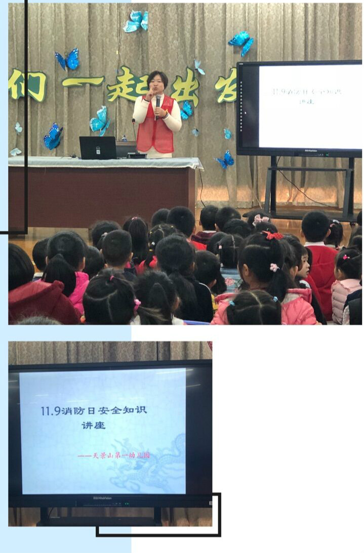 今天是11月9日,孩子们都知道这是119消费安全日,幼儿园组织了孩子们集体听了一场关于消防安全的讲座,主讲人是保健王老师,孩子们对王老师很熟悉,讲座过程中,大家都很认真,仔细听、认真看,了解了如何从身边去防火防灾,也学习了遇到火灾该如何去做!除了打119报警电话,还知道遇到火灾时用湿毛巾、棉被等物品来自救……