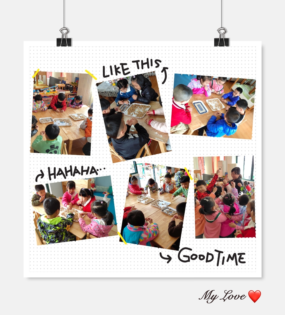 “麻屋子,红帐子,里面住个白胖子”孩子们猜呀猜呀,原来是花生宝宝。孩子们今天进行了一次剥花生活动,开始的时候和孩子们先感知花生的构造,知道花生壳中的花生米的数量是不同的,还学会用数字或者标记记录花生的数量,最后开始剥花生进行了品尝,有的用手挤压,有的用牙齿咬开,看来还是办法多啊。有的孩子很棒,在品尝的时候知道与老师分享,为你们点赞哦!