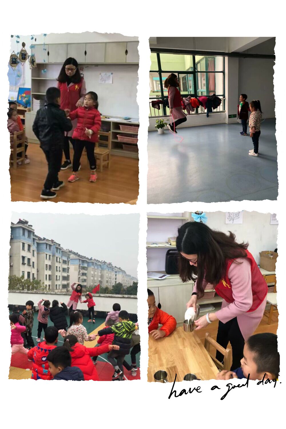 家长助教活动又开始啦!这次来的是柳熙玥小朋友的妈妈,她是一位护士,所以对孩子呵护有加!这次在班级呆了一整天,陪孩子游戏、活动,与孩子一起跳绳,孩子们特别喜欢这位亲切的妈妈,大家都喜欢跟她一起游戏!希望我们的宝贝和家长永远开心快乐哦!