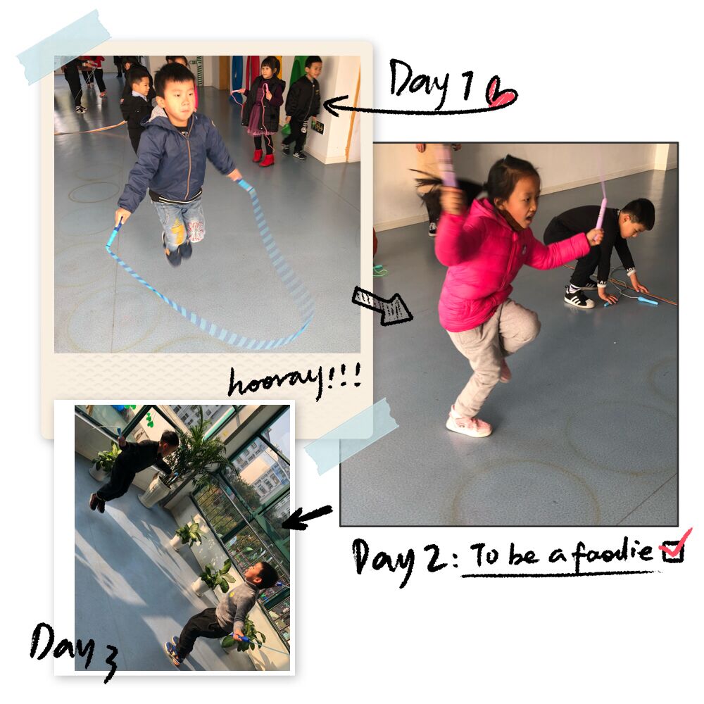 通过一个多月的跳绳练习,孩子们进步特别大!从刚开始一个一个的跳,到连续跳3个,再到连续跳5个,现在更多的宝贝能够双脚连续跳20个以上,这离不开孩子们的苦苦练习,也离不开家长在家里的帮助指导!宝贝们真棒,希望大家继续加油,努力锻炼身体,身体棒棒的,才能更好的成长哦!
