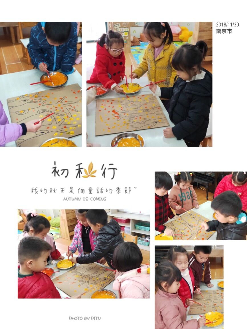 阵阵秋风吹落了红的叶、黄的叶,吹动了妈妈的裙角,吹来了香香的水果。为了让孩子们感受秋天的美丽多彩,今天我们带孩子们开展了一节美术活动《多彩的秋林》,活动中孩子们不仅感受了秋天树林绚丽的色彩,同时在创作的过程中还欣赏了色与色交融所带来的色彩变化之美。通过本次的活动孩子们不仅在点彩的表现技法上得到了提高,同时在水粉操作方面有了很大的进步。