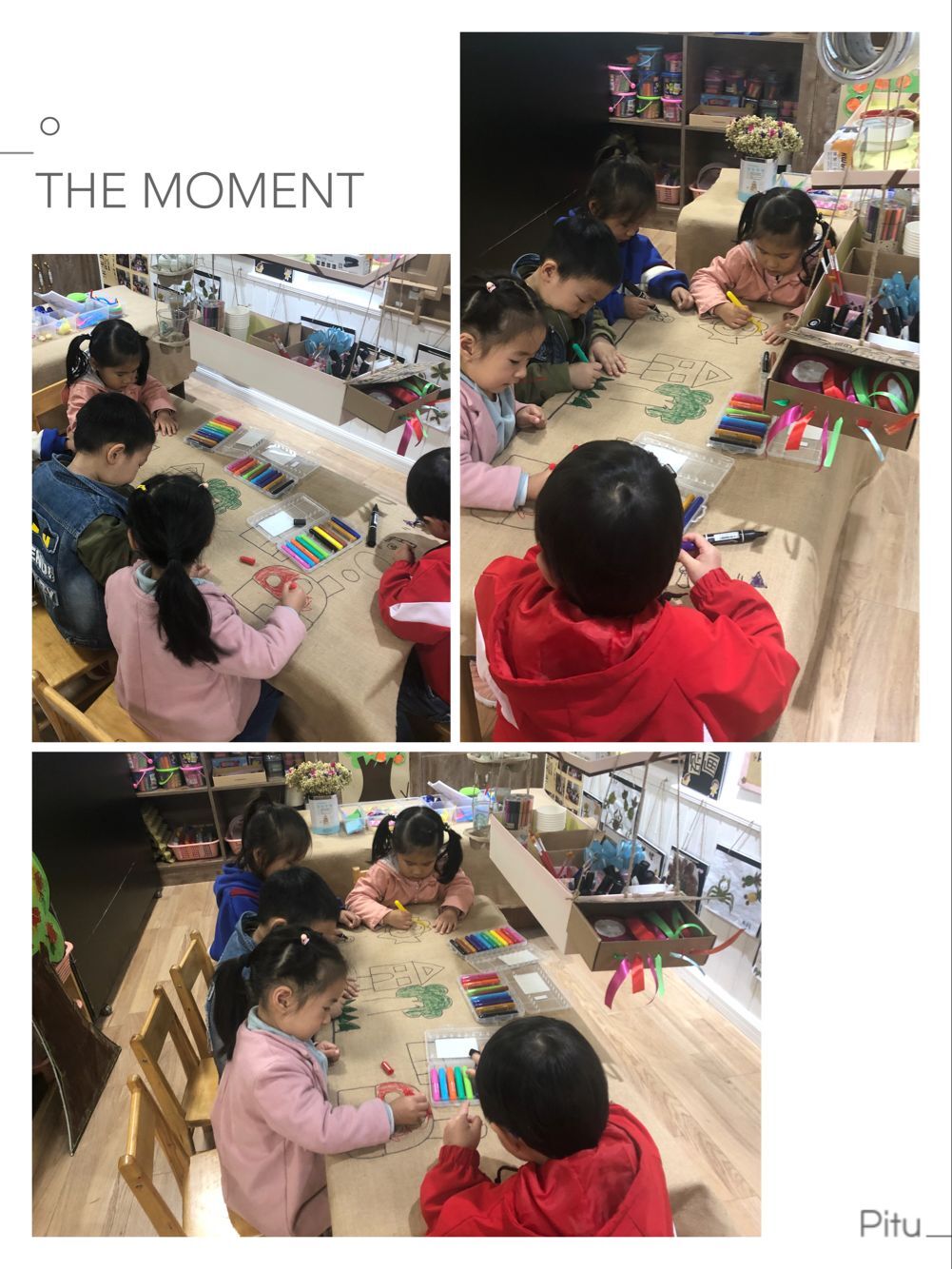 美工区活动的时候刘心彤和汪苏垚几个小朋友在美工区的桌子上画好看的图案装饰桌布,小朋友们玩的非常开心,我们一起来看看吧!