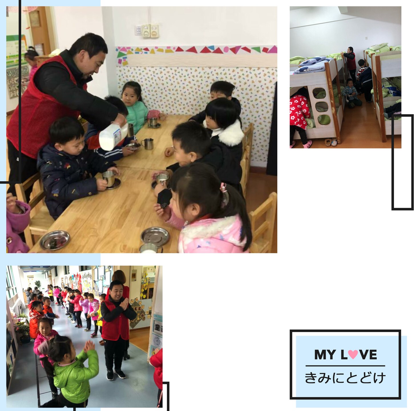 带我们做早操、给我们倒牛奶、给我们盛饭、替我们铺床铺……