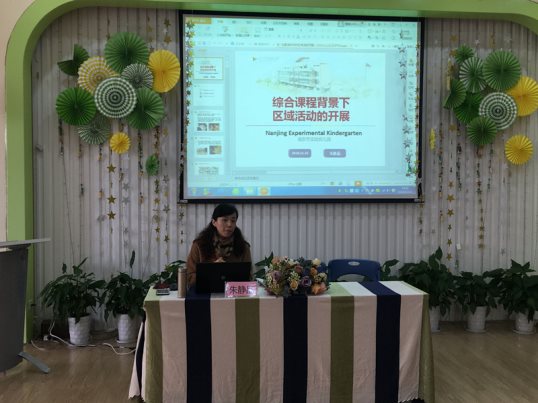 其后,朱园长结合本次交流活动开展了一个微型讲座《综合课程背景下区域活动的开展》。引导教师们在一个个真实的案例中,去感悟如何推进幼儿的深度学习,怎样设计幼儿喜欢的游戏活动。反思如何去创设一个有利于引发幼儿多种经验,有利于支持幼儿与之互动的游戏环境。并用图文并茂的形式展示了主题活动与区域活动的有效融合方面的研究成果。