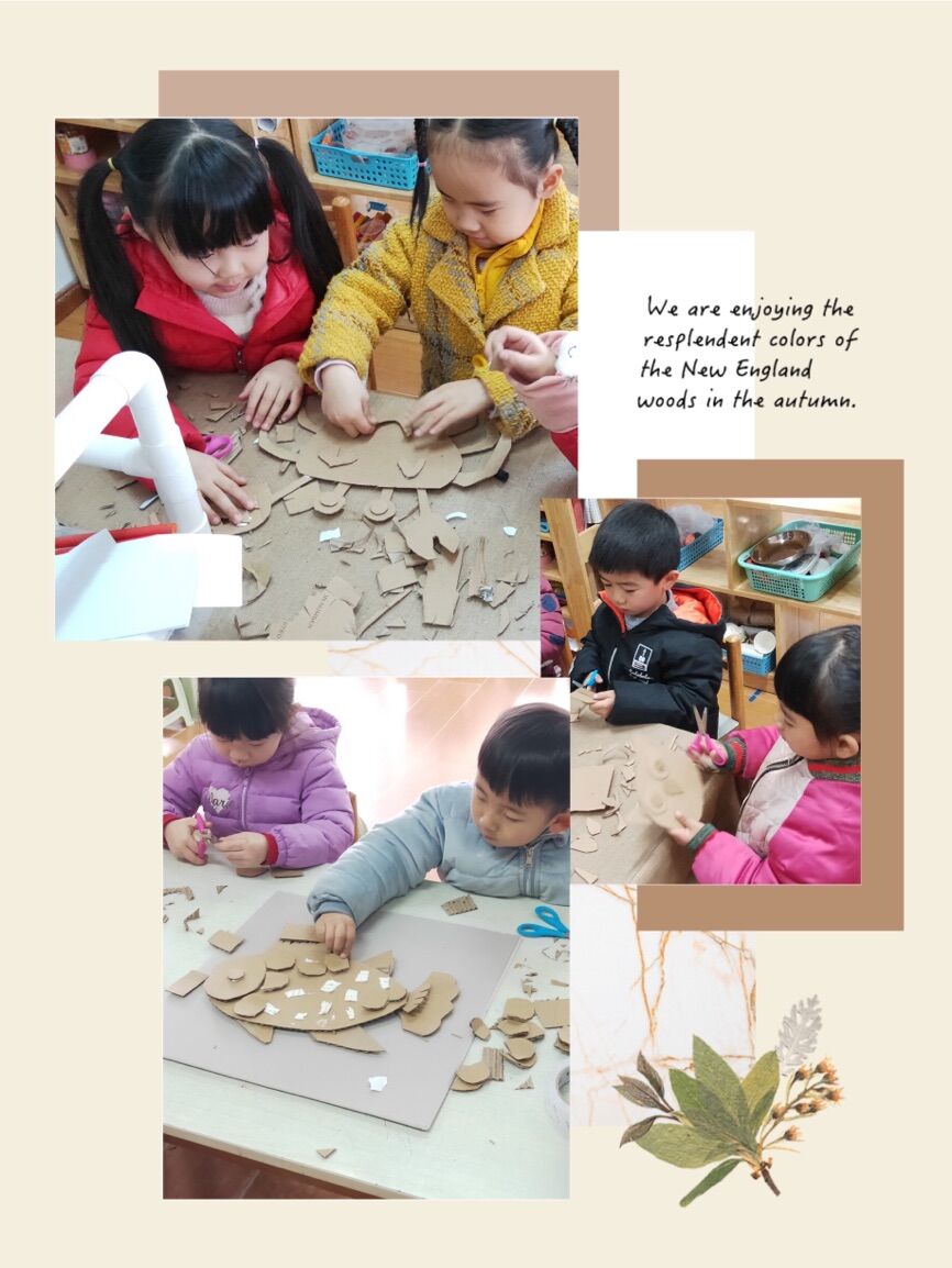纸板可以做什么,带着这个问题,今天我们和孩子们一起制作了纸板拼贴画,在制作之前孩子们和老师先讨论了制作什么,然后通过剪贴的方式制作出了各种动物造型,瞧,孩子们做的多认真啊!