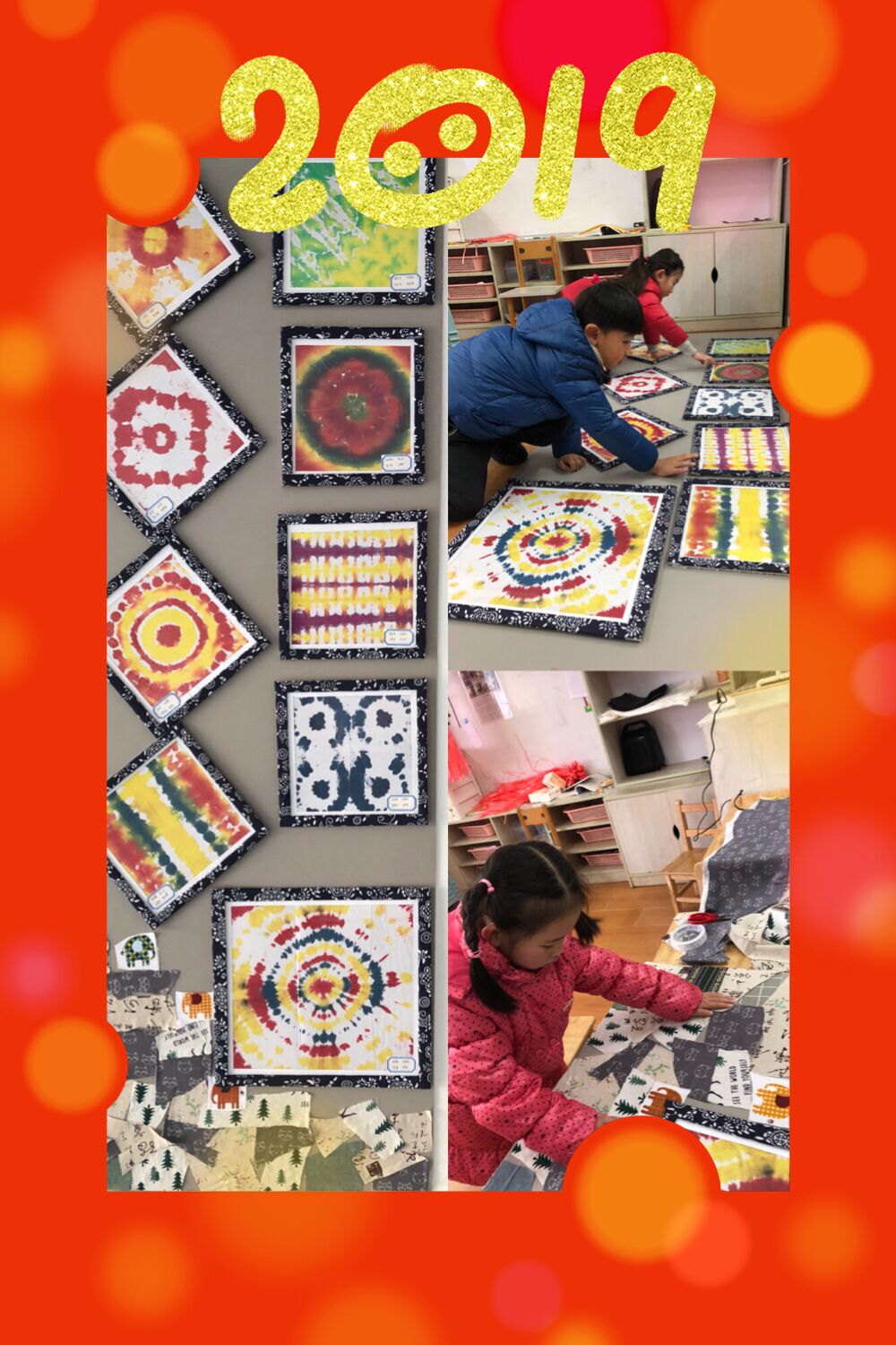 扎染活动是孩子们很喜欢的,用彩色墨水把一块块白色的布料变成五颜六色的艺术作品,孩子们兴趣极高,在制作过程中,大家也了解了一些简单的扎染的艺术意义。看我们的作品美不美啊?