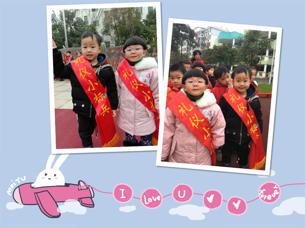 这是我们班的侯昊洋和孙以沐两位小朋友,本周他们被评为光荣的礼仪小标兵了!~