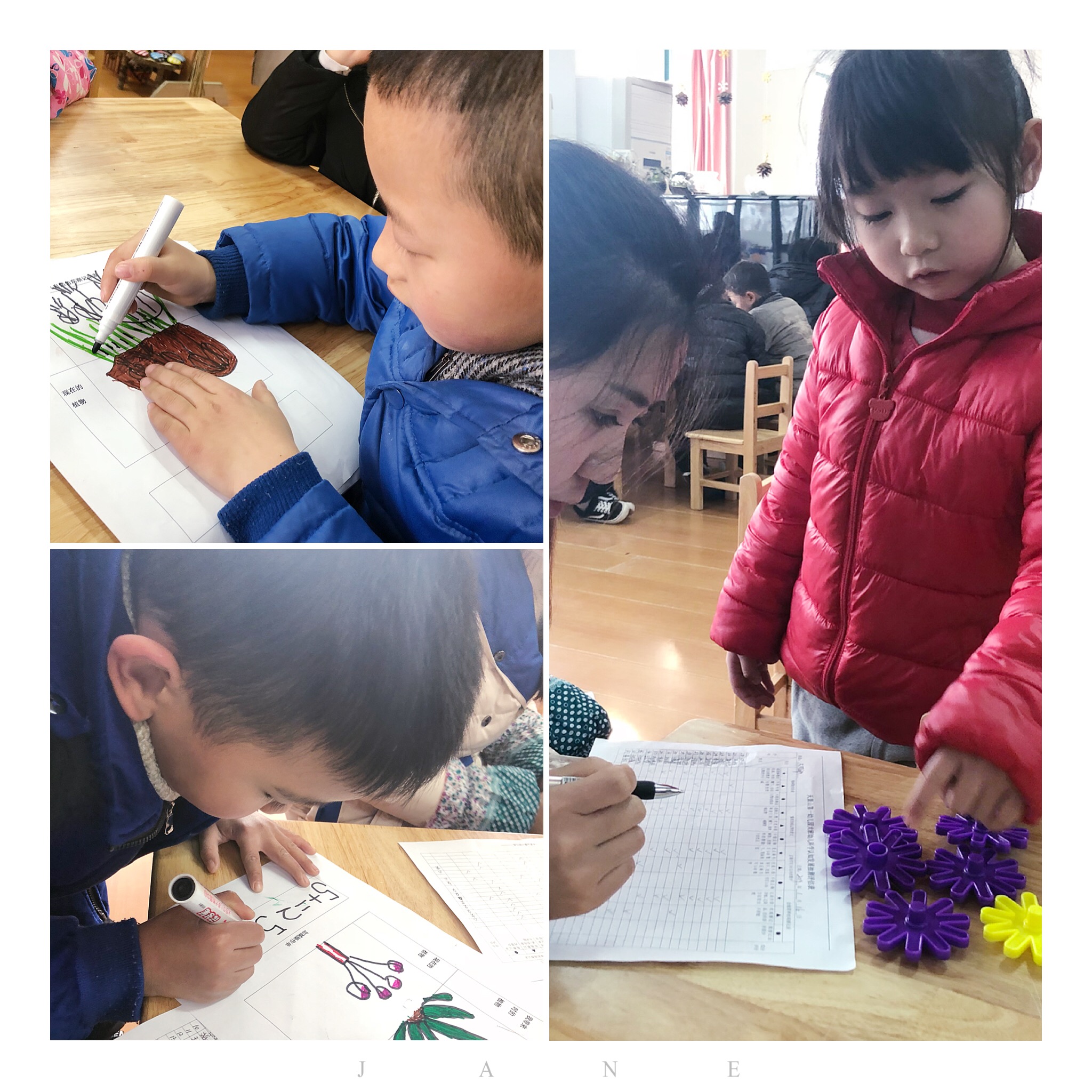 本周我们进行了集体复习,并利用时间进行了,大班幼儿科学认知评估。总共,分为四项:1.理解数的组成、2.懂得加减运算的意义、3.正确书写10以内的数字4.会做简单的观察记录。在数的组成中幼儿都掌握的很好;在加减运算中,部分幼儿还需要加强对“+”、“-”、“=”的理解。在书写数字中,幼儿完成的也较不错,但还有个别幼儿会将“5”和“2”写反。在老师的帮助下,能够书写正确了。观察记录中可以看出幼儿的认知发展,还是和我们成人观察的不太一样,能观察到比较细致的地方。如:发财树的树皮脱皮、绿萝叶子的蜷缩、乌龟的龟壳颜色变化等。希望小朋友们继续努力,一起取得更好的表现哦!