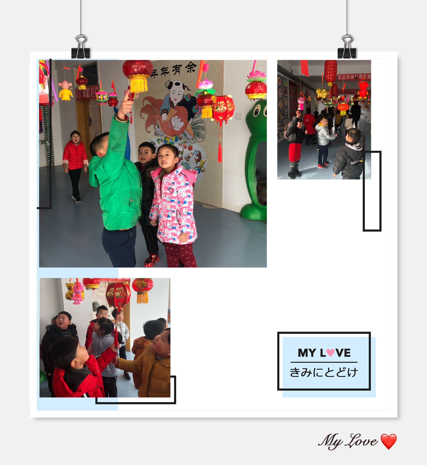 元宵节当天,孩子们开心的观赏灯笼,摸一摸、看一看,并且在班级里与老师共同制作了一个布艺灯笼。孩子们在制作时,能够知道灯笼的简单构造,并且和同伴共同合作制作灯笼,都是棒棒哒!