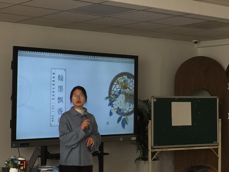 小陶老师从水墨工具、水墨画的特点、运用技巧三个方面进行了讲解,同时采取边作画边讲解的方式向大家展示了水墨韵味。
