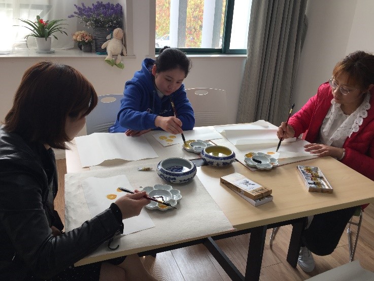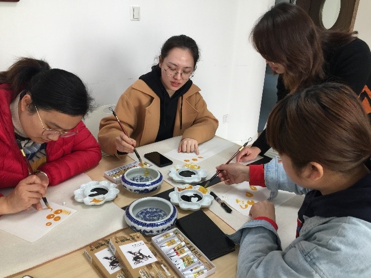 为了不断提高教师的艺术素养,在教师队伍中传承好祖国文化,促进教师更好地开展美术活动,同时也能向孩子们渗透中国传统文化,本次美术教研组活动第一个环节进行的是“小陶老师课堂”,丹青吐彩,翰墨飘香,整个活动室弥漫着浓浓的艺术气息。