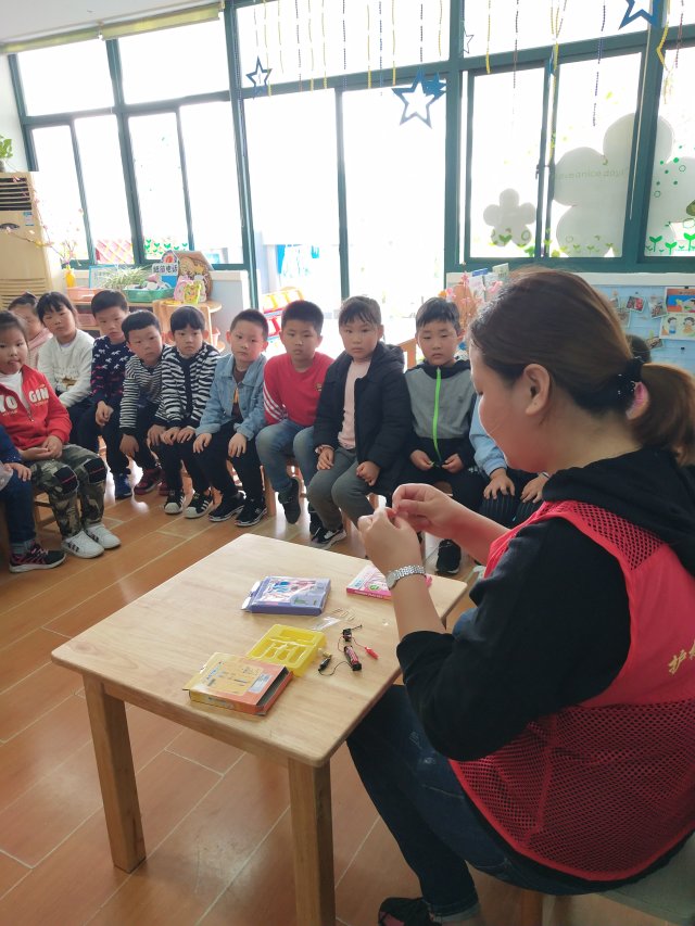 王成敬小朋友的妈妈参加了班上的家长助教活动,孩子们热情接待,也很期待这一天,还听说给我们带来了不一样的礼物和小科技。上午的晨间锻炼和早操活动孩子们积极认真参与,接下来是孩子们最忙的时刻了,你们看孩子们的小眼睛一个个盯着这位妈妈手里的小部件,在这位妈妈的讲解过程中,孩子们既好奇又想探个究竟,看来孩子们对科学想象还是很感兴趣呢!希望孩子们在这样有趣的活动中找到灵感,喜欢科技,热爱科学,长大了做一名真正的发明家!