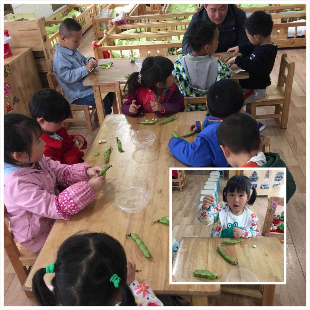 本周我班开展了一次感官实践活动——《剥蚕豆》。