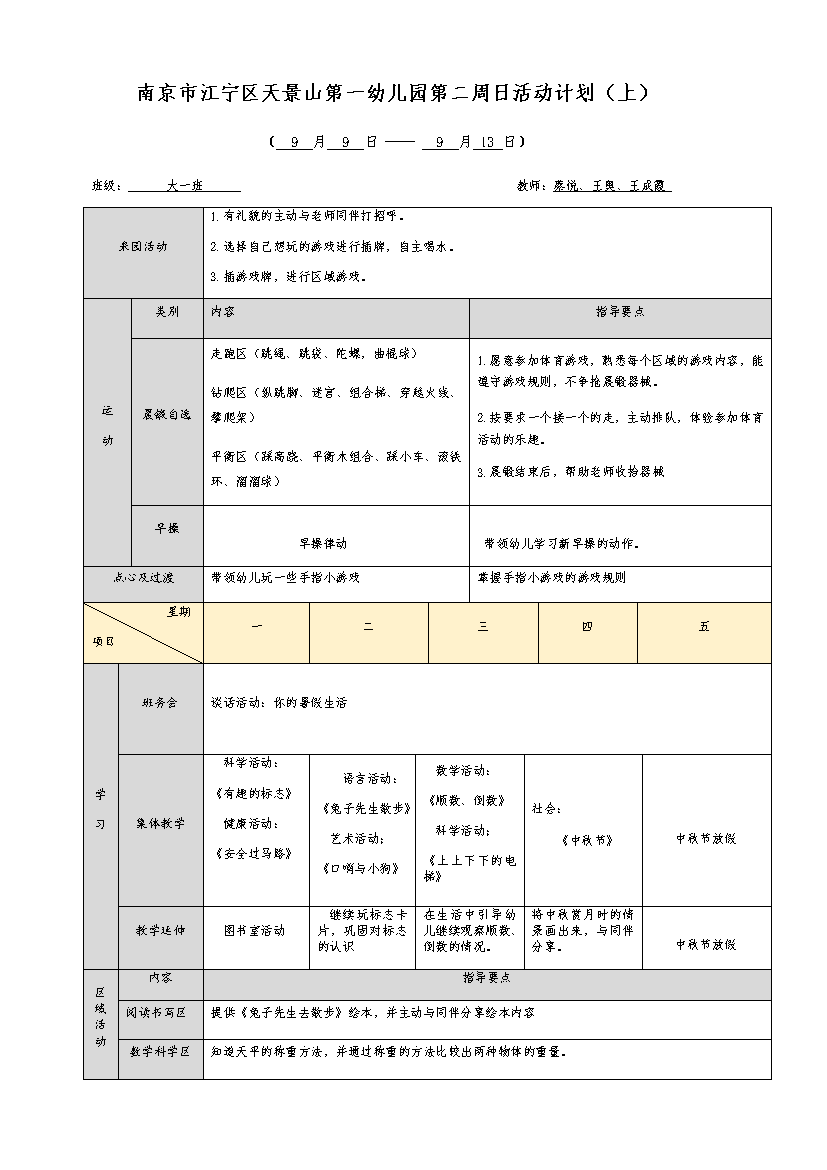 上一篇大一班第一周周计划