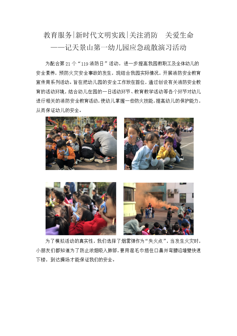教育服务|新时代文明实践|关注消防 关爱生命——记天景山第一幼儿园应急疏散演习活动