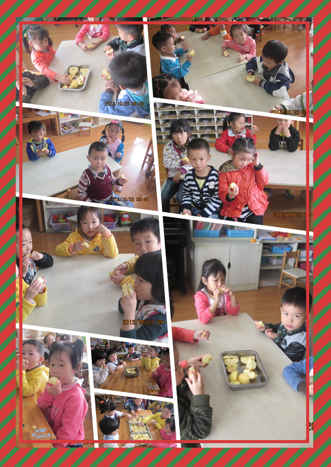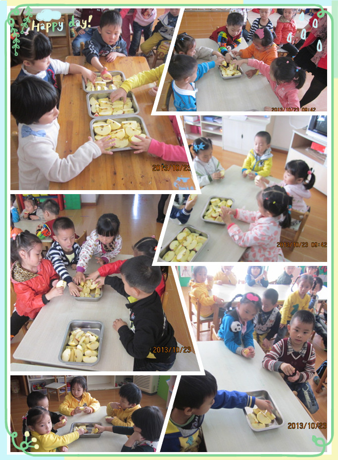 今天,老师教我们认识水果的种子,原来每个水果的种子都是不一样的,真的是太神奇了!课后,老师带领我们一起品尝苹果,去寻找苹果的种子!酸酸甜甜的苹果真好吃,我们一边品尝一边观察,真的是太有趣了!