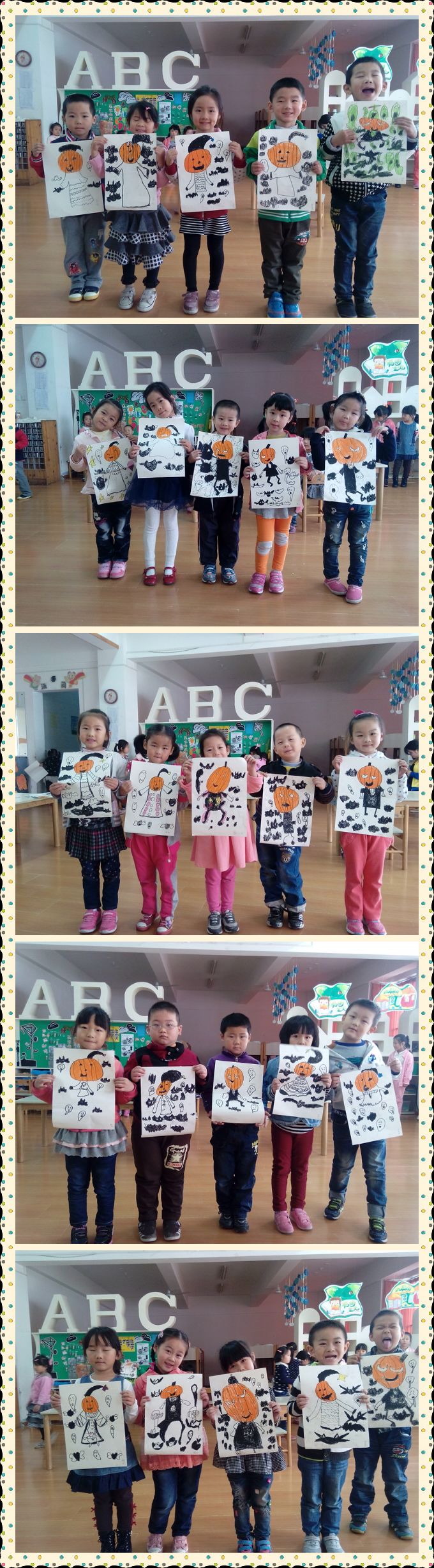 这一幅幅的“巨作”都是由大三班的孩子们绘画出来的,很棒哦!宝贝,老师在这里表扬你们哦!还有......万圣节快乐!