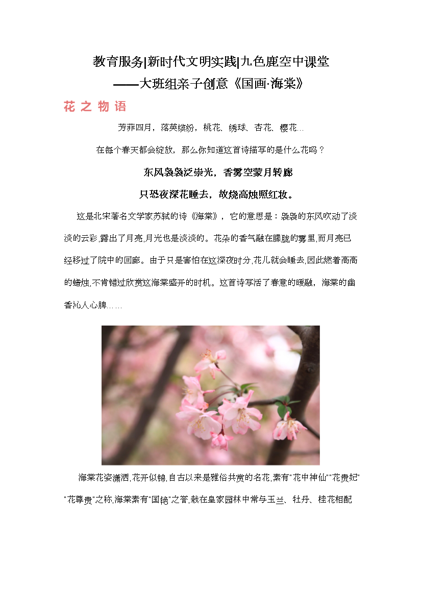 教育服务|新时代文明实践|九色鹿空中课堂——大班组第三十九期亲子创意《国画·海棠》