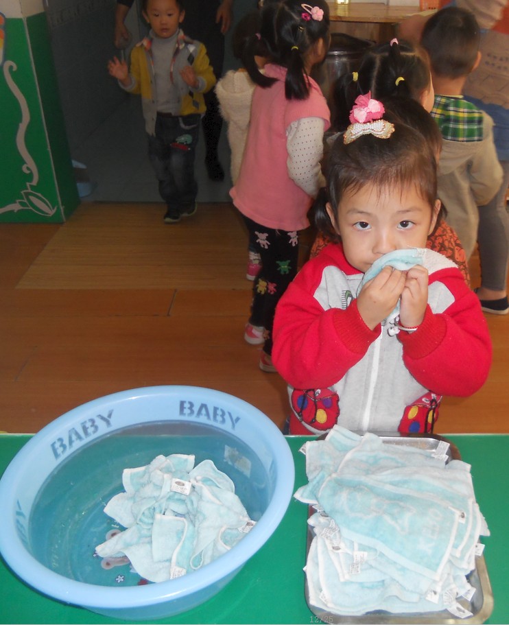 每天我们吃过午餐都要进行漱口和擦嘴,我们是讲卫生的宝宝。是不是很棒啊??