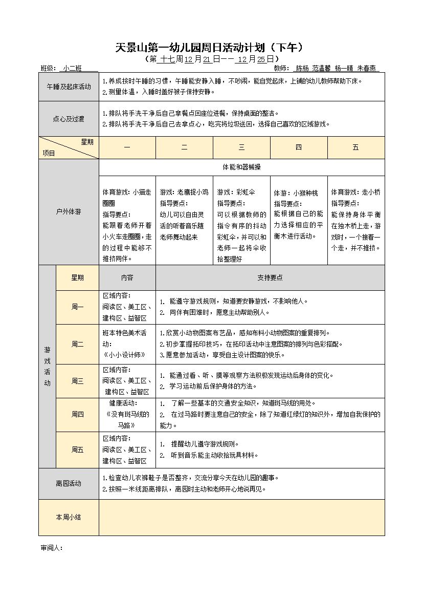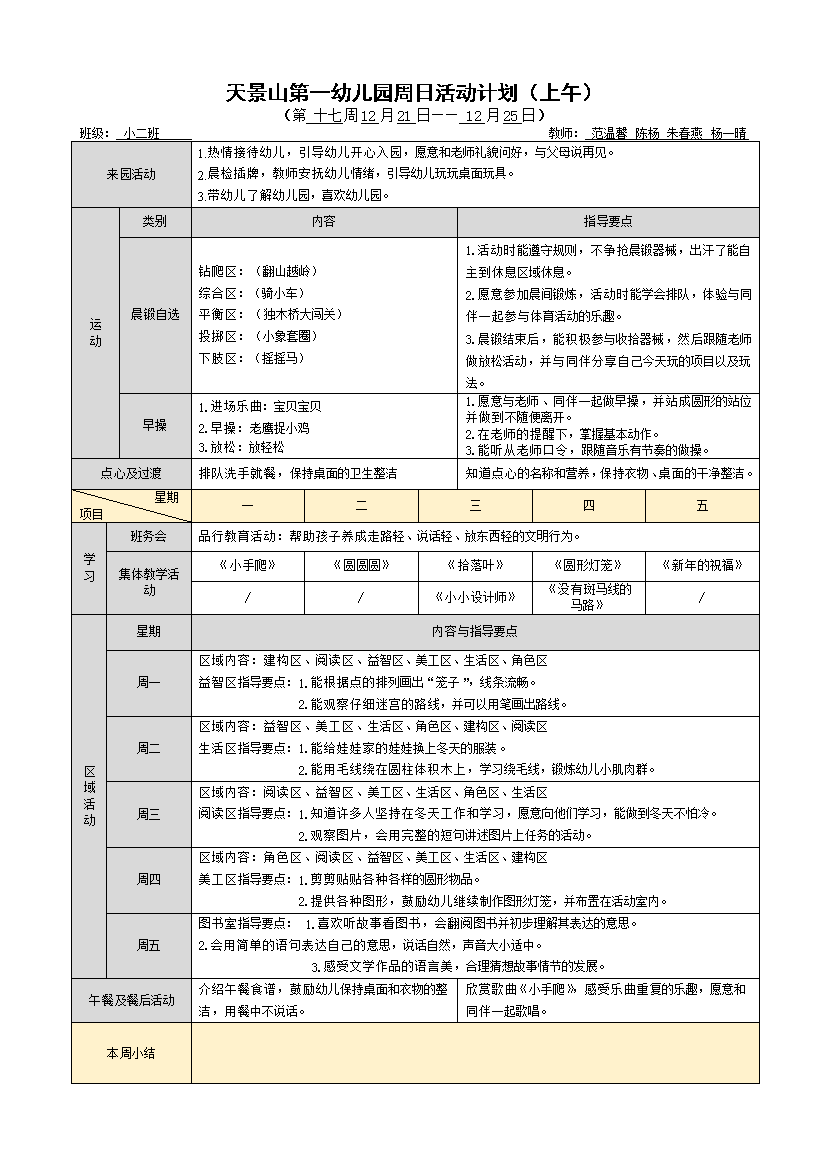 上一篇小二班第十五周周计划
