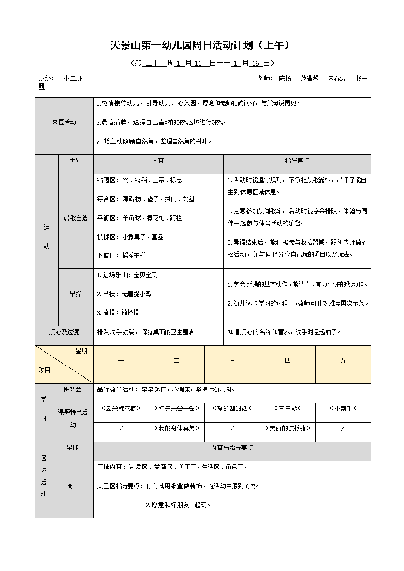 下一篇小二班第十九周周计划