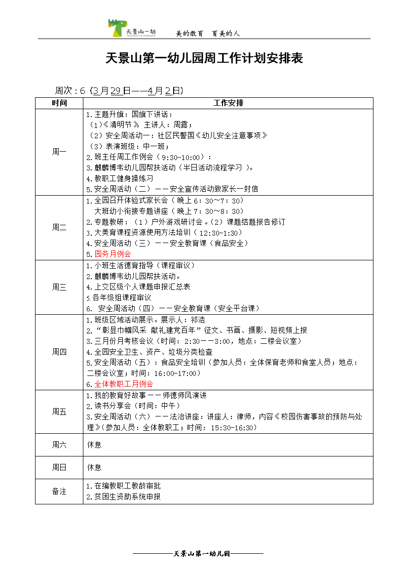 下一篇天景山第一幼儿园20-21下第七周工作计划安排表