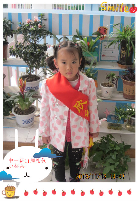 这一周是蔡依婷小朋友获得了礼仪小标兵的称号!要继续努力,继续加油哦!