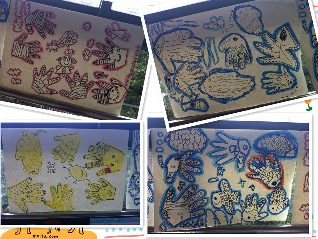 结合我班课题的研究,在家长开放日活动中我们开展了手指变变变——借形想象添画的美术活动,这是孩子们和爸爸妈妈一起完成的作品,真不错!