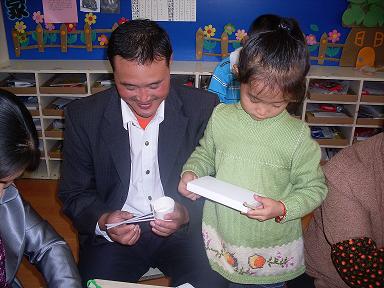 孩子们在不知不觉中长大了。我们太阳班的宝宝活泼、开朗。他们是一群充满朝气的小太阳。孩子们的点滴进步都凝聚了家长和老师的心血。为了让各位家长对孩子在园情况有更清楚的了解。我们太阳班在10月22日进行了家长半日开放活动。宝宝们和爸爸、妈妈一起,开展亲子美工《做鼻子》。瞧他们做得多开心,做好了,大家来个《鼻子比美会》,比比谁做得鼻子最榜!